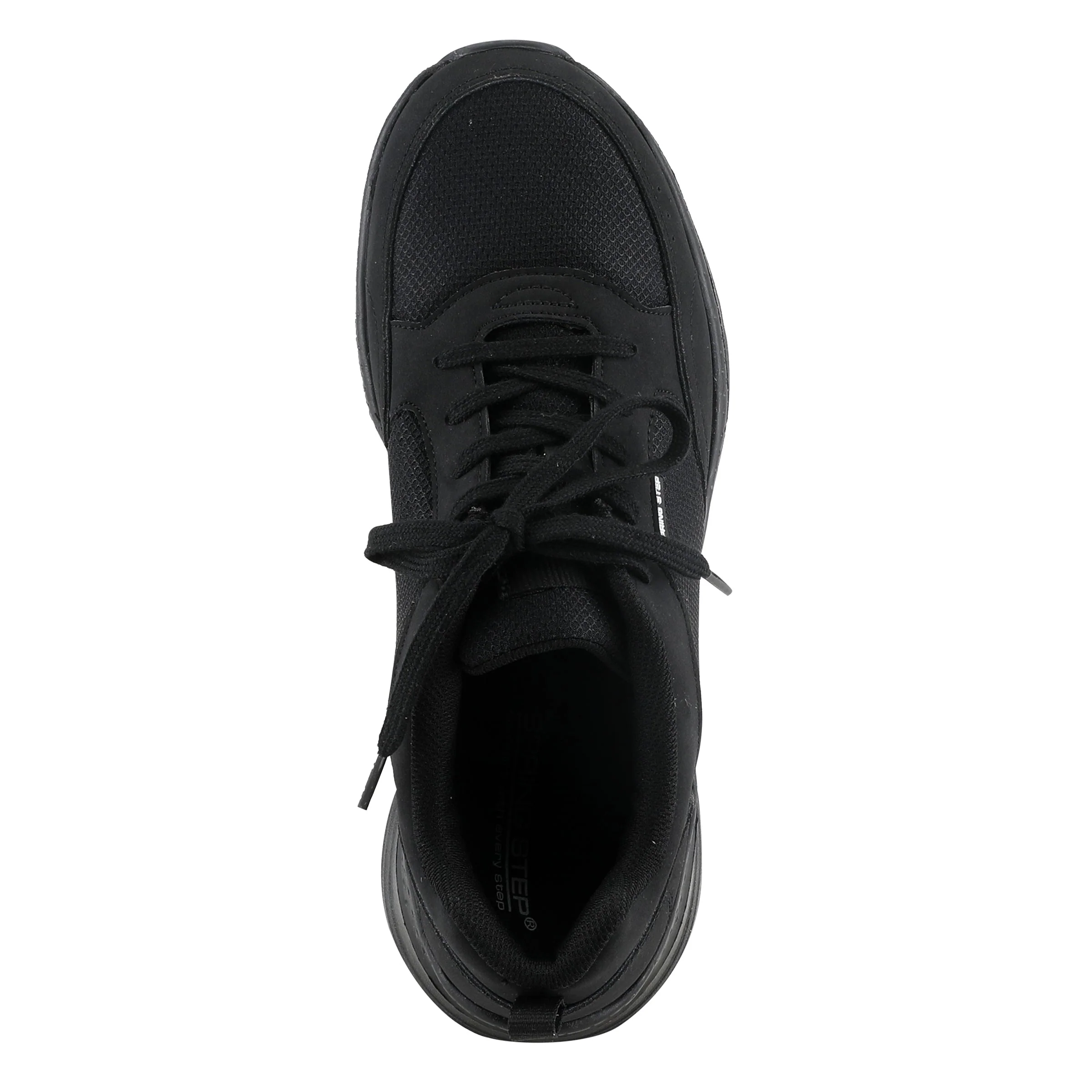 Versatile athletic look work shoe all in one. All over black making this style sleek and stylish. Ultra lightweight with an oil and skid resistant tread and a back pull loop.
